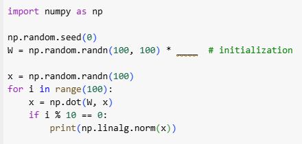 Which value of the scaling factor is most likely to lead to exploding gradients?