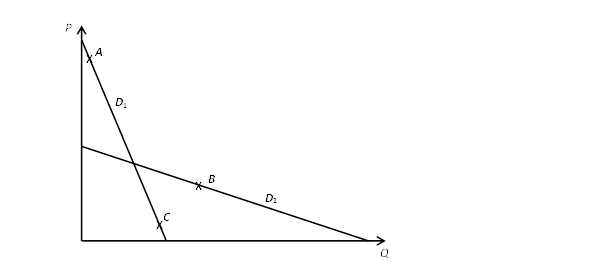The following figure depicts a firm’s profit-maximising choice at point E, given the market demand curve and the firm’s marginal cost curve.
