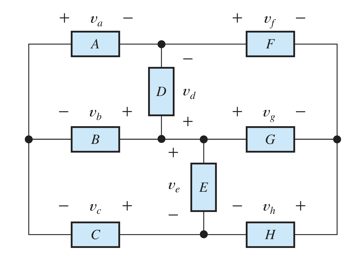 We know that va = 2,3 V, vb = 4,7 V, vf = 4 V and vh = 7,9 V, solve for vc.