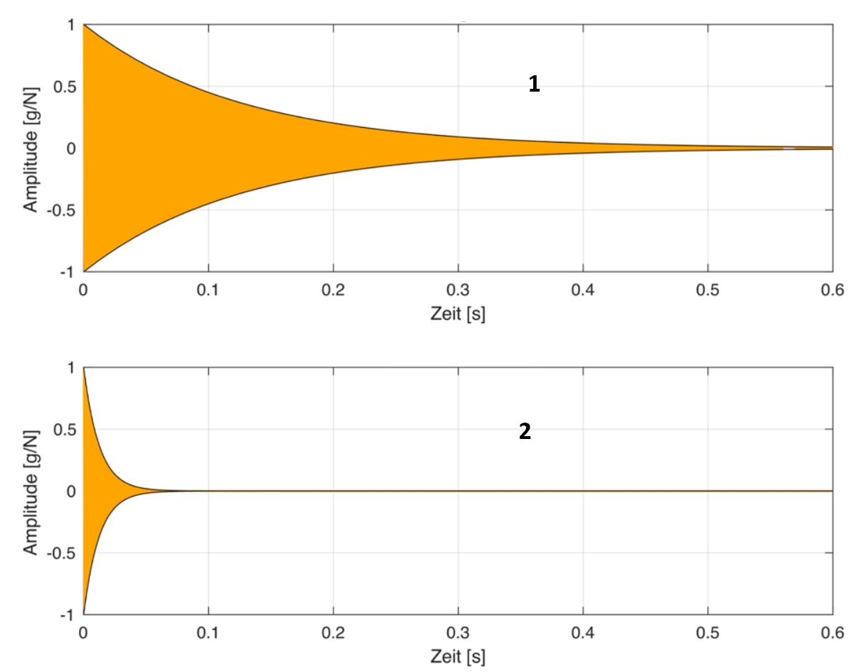 Geben Sie die Kurve an, welche das bessere Dämpfungsverhalten aufweist.