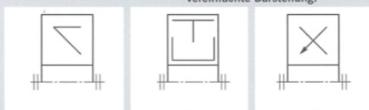 Die Abbildung zeigt drei verschiedene vereinfachte Darstellungen von Dichtungen.Welche Dichtung zeigt das Bild rechts?