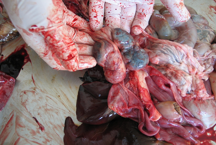 Рис. 1. Нирки собаки за лептоспірозу, зовнішній вигляд, некропсія. Макрофото.