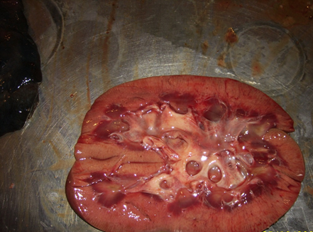 Рис. 1. "Розм'якшена нирка", загальний вигляд, некропсія.