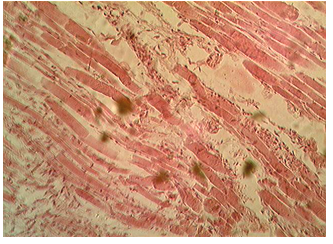 Рис. 1. Гістозріз фрагменту грудного м'яза бройлера індика. Забарвлення гематоксилін-еозином.