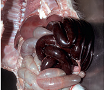 Рис. 1. Органи черевної порожнини собаки, некропсія.