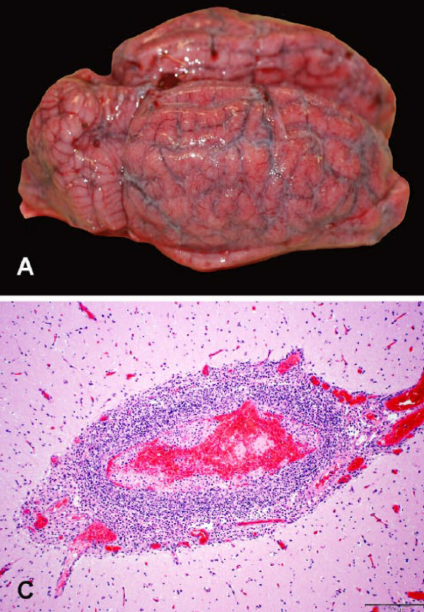 Які зміни розвиваються у головному мозку за нервової форми лістеріозу?