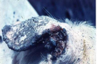 Який генезис ймовірного розвитку сухих некрозів шкіри кінчиків вушних раковин та хвоста у тварин за розвитку хронічного варіанту бешихи свиней?