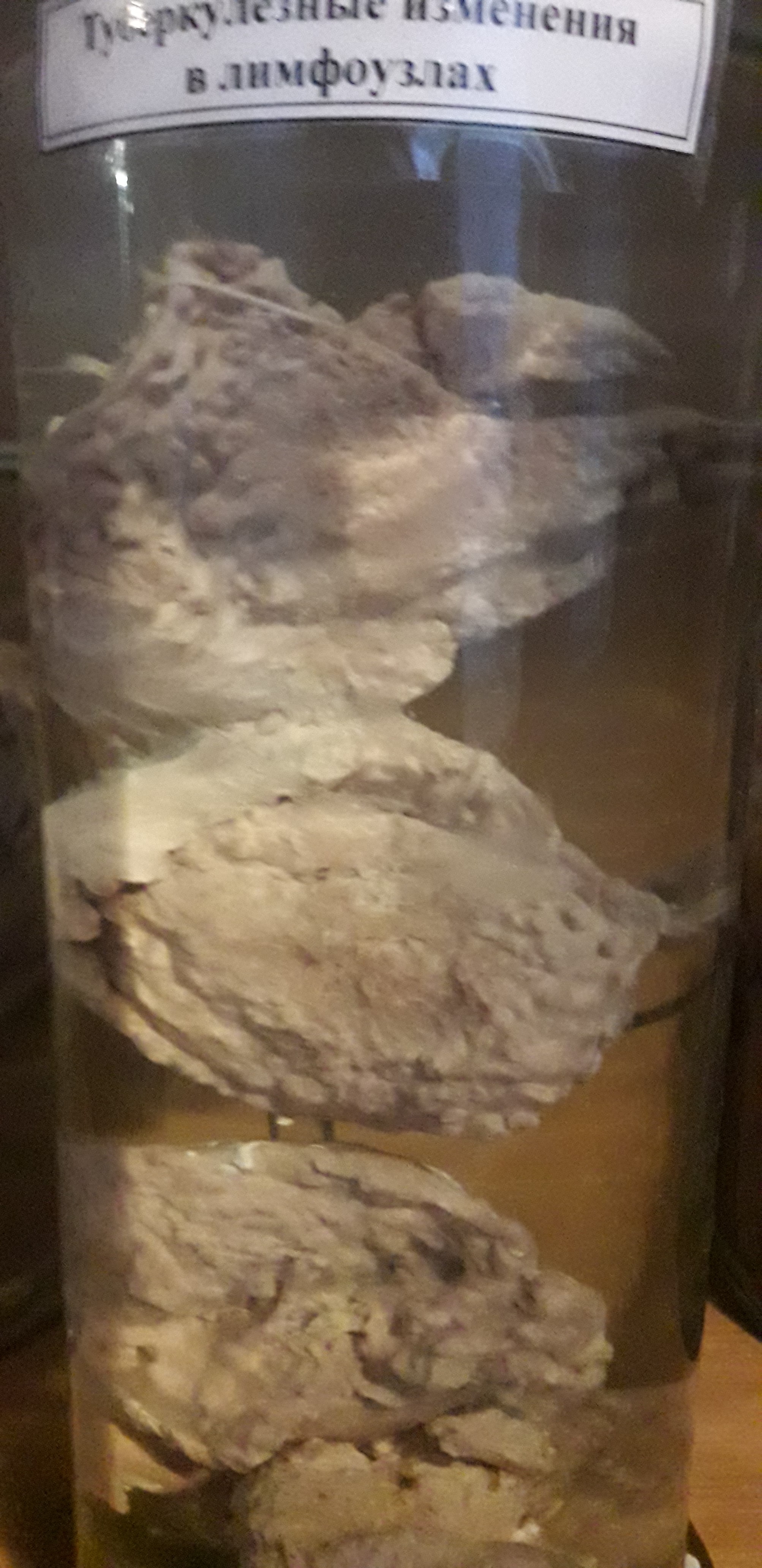 За макроскопії лімфатичного вузла, відібраного від туші корови, яка хворіла на генералізований туберкульоз, у його товщі виявлені сіро-білі, сухуваті, щільні маси, однорідні (безструктурні) на розрізі, оточені міцною сполучнотканинною капсулою. Яка патологія описана?