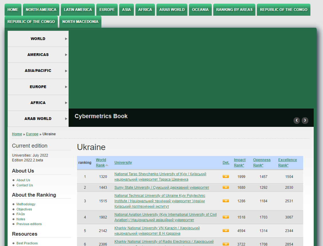 Сайт якого міжнародного рейтингу університетів зображено на рисунку?