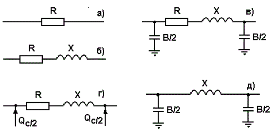 На малюнку (б) зображено схему заміщення ліній електропередач
