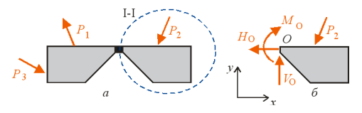 (за додатній напрямок моментів взято обертання за годинниковою стрілкою)