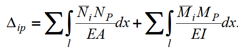 Ввеличини куожного з трьох доданків у формулі Максвела-Мора характеризують внесок того чи іншого виду внутрішніх зусиль в переміщення, що розшукується. На підставі аналізу цих доданків можна дійти до висновку, що для різного виду конструкцій нехтування деякими видами зусиль мало позначається на значенні переміщення. М-згинальний момент, N-повздовжна сила, Q - поперчна сила.