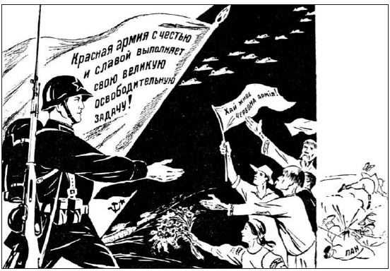 Виправданню агресії СРСР проти якої країни відповідає зміст зображеного плаката?Напис на плакаті: «Червона армія з честю і славою виконає своє велике визвольне завдання! Хай живе Червона армія!»