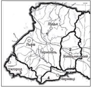 Якою цифрою позначено на карті територію, що увійшла до складу УРСР у 1940 р.?