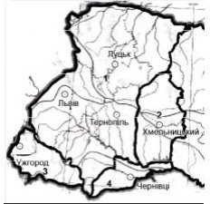 Якою цифрою позначено на картосхемі українські землі, що перебували у складі Румунії в міжвоєнний період?