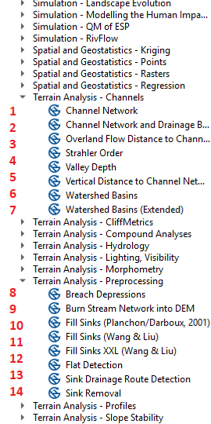 Вкажіть номери плагінів ГІС SAGA, якими можливо скористатись для створення гідрологічно вірної моделі рельєфу на основі ЦМР SRTM …