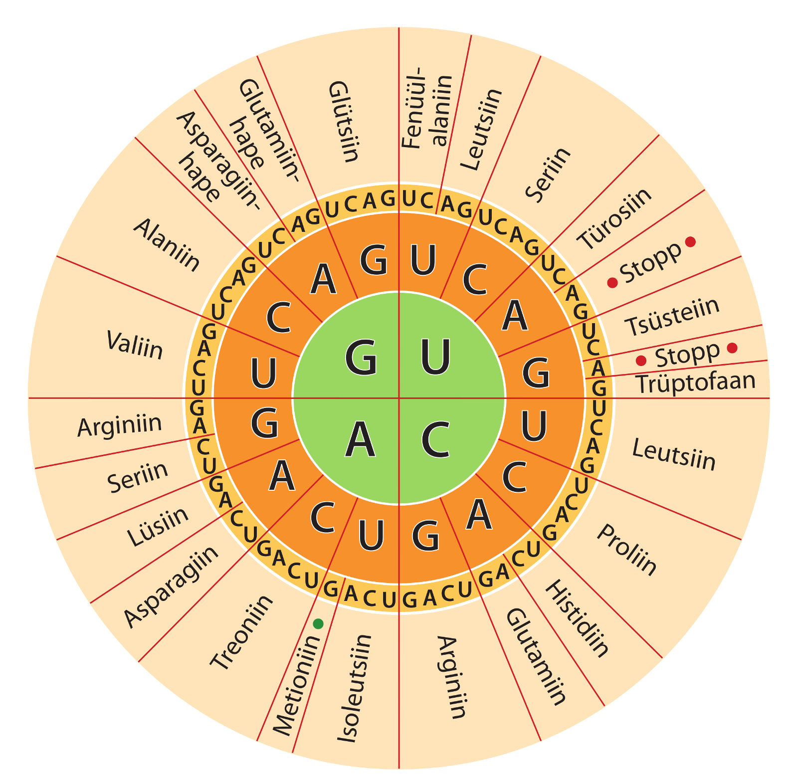 Vali koodon, mis tähistab stoppkoodonit.