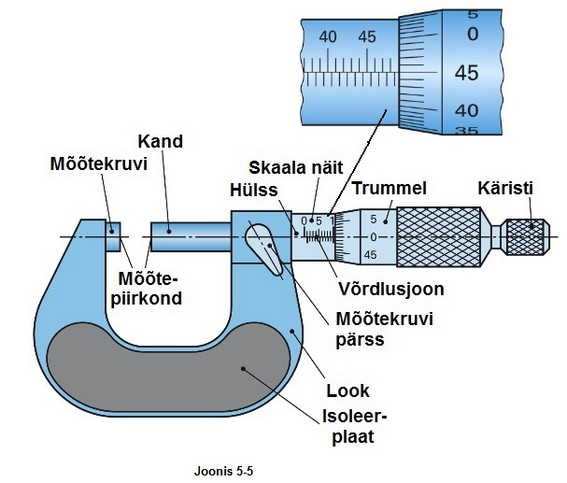 Milline on kruviku näit? Arvestage ainult eraldi väljatoodud skaala ja trumli näitu, kruvikul on teine väärtus