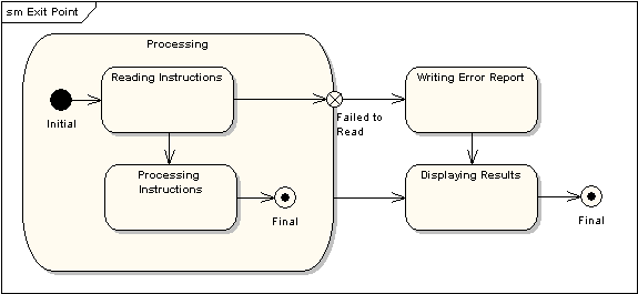 Розрахуйте мінімальну і максимальну тривалості виконання фрагменту системи, якщо він представлений за допомогою діаграми станів як на рисунку, причому стани виконують діяльність тривалістю: Reading Instructions - 1 ms, Processing Instructions - 5 ms, Writing Error Report - 1ms, Displaying Results -1 ms , решту параметрів за замовчуванням.