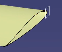 Nous souhaitons créer la surface à l'extrémité de l'aile étant construite à partir des deux surfaces précédemment créées telle qu'illustrée ci-dessous :