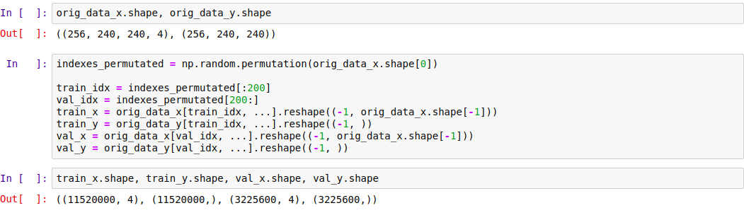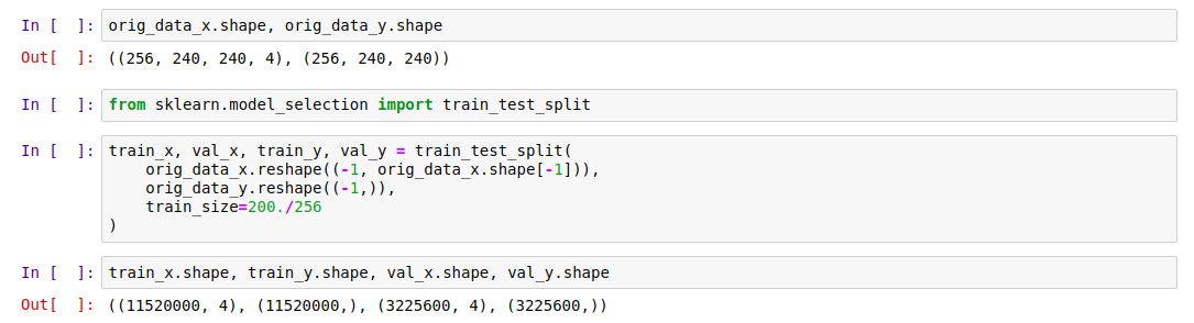 Suppose we have an array of sample brain scans X of shape (256 × 240 × 240 × 4), and an array Y of target segmentation for tumors, of shape (256 × 240 × 240 × 1), just like in practice session 6.
