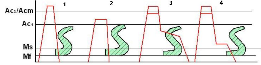 Els diagrames mostrats a sota corresponen a diferents tipus de tremp, indica quins dels següents correspon a un tremp martempering: