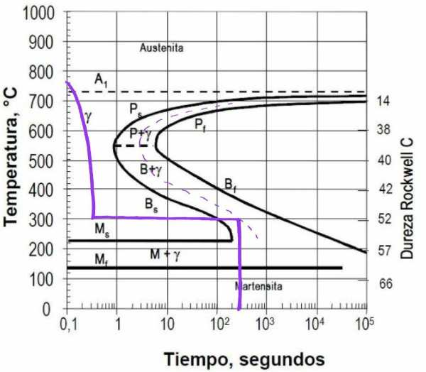 Quina seria l’estructura del material obtingut segons el refredament que es mostra al diagrama TTT anterior: