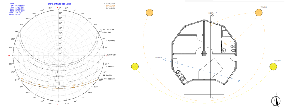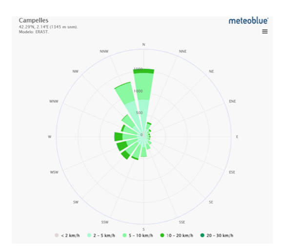 Segun esta rosa del los vientos  diseño una estrategia bioclimática para garantizar ventilación cruzada N-S para tener 1500horas/mes de corriente de aire  a velocidad 20-30 km/h  y 1000 horas /mes a velocidad 10-20 km/h
