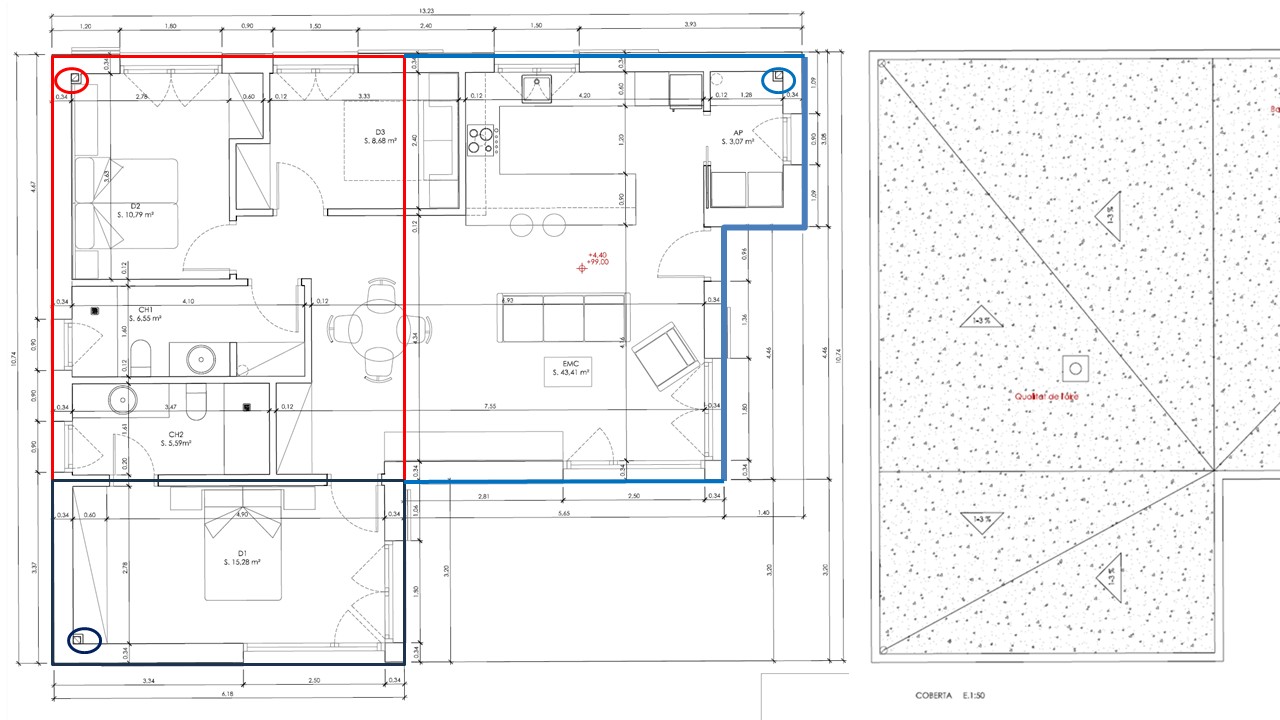 1. Pendiente de  una zona de cubierta plana, (no toda la cubierta, solo una parte) esoge el sistema constructivo y sus capas y calcula el area con las medidas de los planos