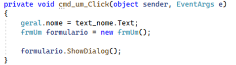 Considere o seguinte código referente à implementação de um projeto em C# (Windows Forms):