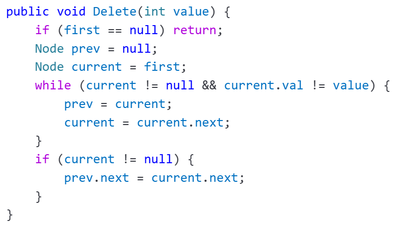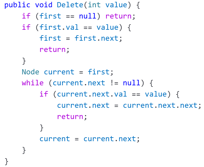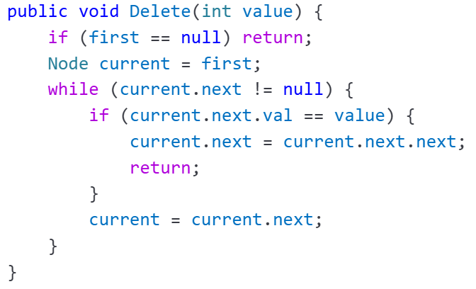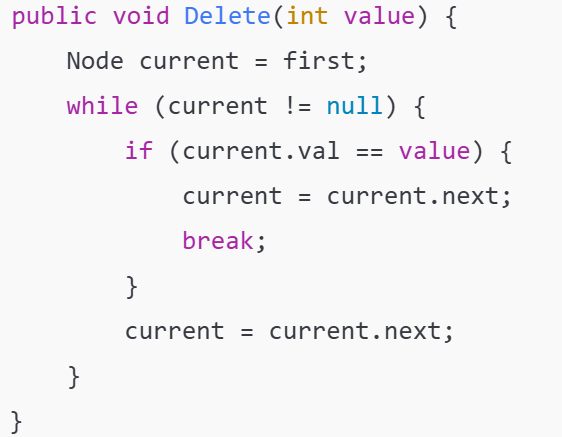 ¿Cuál de las siguientes implementaciones elimina correctamente el primer nodo que contiene un valor dado en una lista enlazada simple?