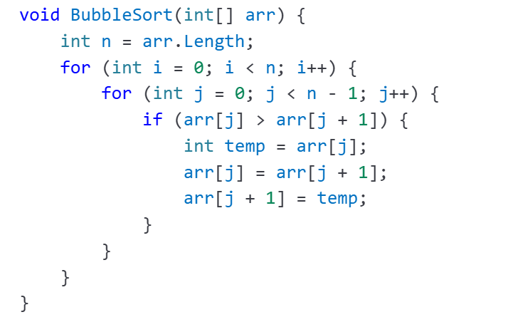 A continuación se muestra la implementación del algoritmo de ordenamiento de burbuja en C#.