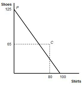 The graph shows Home's international trading pattern. Point P is production with trade, and point C is consumption with trade. Which product does Home export?