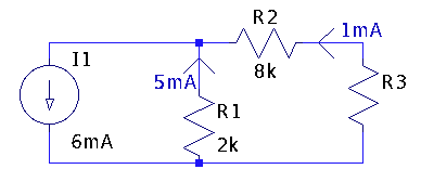 Qual o valor da corrente (em mA) em R3 ? ( Use divisor de corrente)