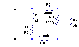 Qual a resistência, em Ohms, equivalente vista dos termiais a-b ?
