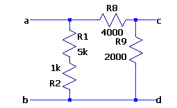 Qual a resistência, em Ohms, equivalente vista dos termiais a-c ?