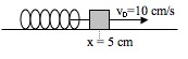Considere um corpo de massa 1 kg preso a uma mola de constante igual a 4 N/m, que se pode deslocar sem atrito num plano horizontal. No instante t=0, a partir da posição x= 5 cm (sendo x=0 a posição de equilíbrio), é dada uma velocidade inicial de 10 cm/s, tal como indicada na figura. Uma das equações abaixo, em que x tem unidades de cm, descreve correctamente o movimento oscilatório harmónico resultante. Indique qual é.