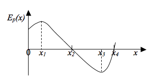 O gráfico da figura representa a variação da energia potencial Ep(x), a que uma partícula está sujeita, com a variável x. A força tem o sentido positive em: