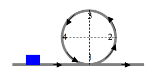 mostra a figura seguinte. O bloco passa nos pontos 1, 2, 3, 4, 1 e