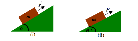 o bloco e o plano inclinado é o mesmo nas duas situações. A força