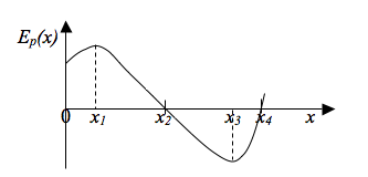 O gráfico da figura representa a variação da energia potencial Ep(x), a que uma partícula está sujeita, com a variável x. A partícula está em equilíbrio estável no ponto:
