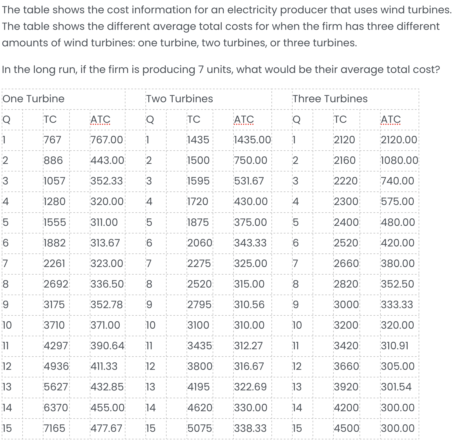 | Q | FC | VC | TC | MC | AFC | AVC | ATC |