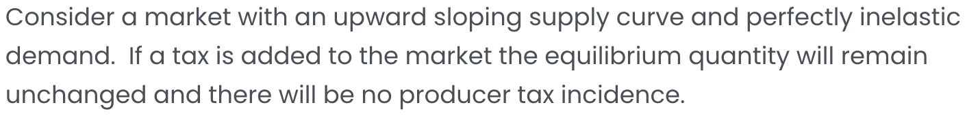 In the market for a good, the demand is perfectly elastic and the supply is perfectly inelastic.