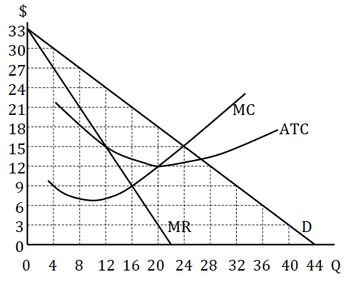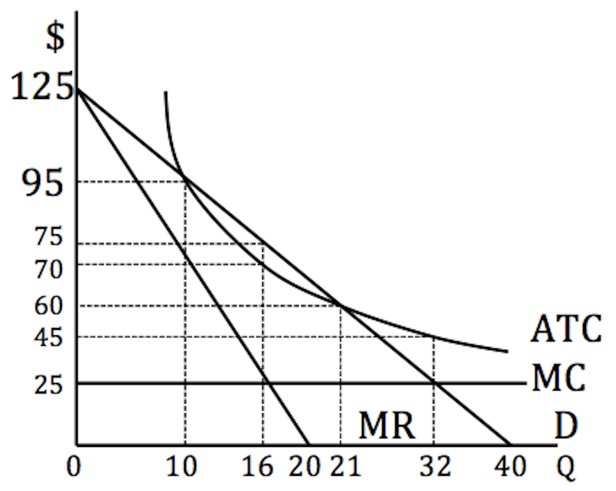 The following diagram shows the functions for a natural monopoly: