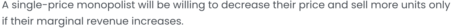 Suppose a single-price monopolist increases the price of its good, from $82 to $84. As a result, the number of units they sell decreases from 1290 to 1214. The