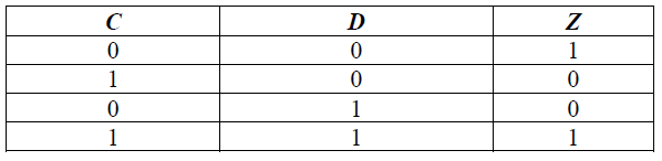 Which of the following logic gate will produce the same results as the following truth table with C and D as inputs, and Z as the output ?