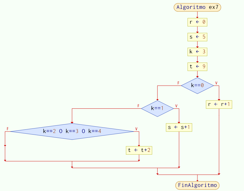 Quin valor tindran les variables r , s , k i t després d'executar aquest diagrama?