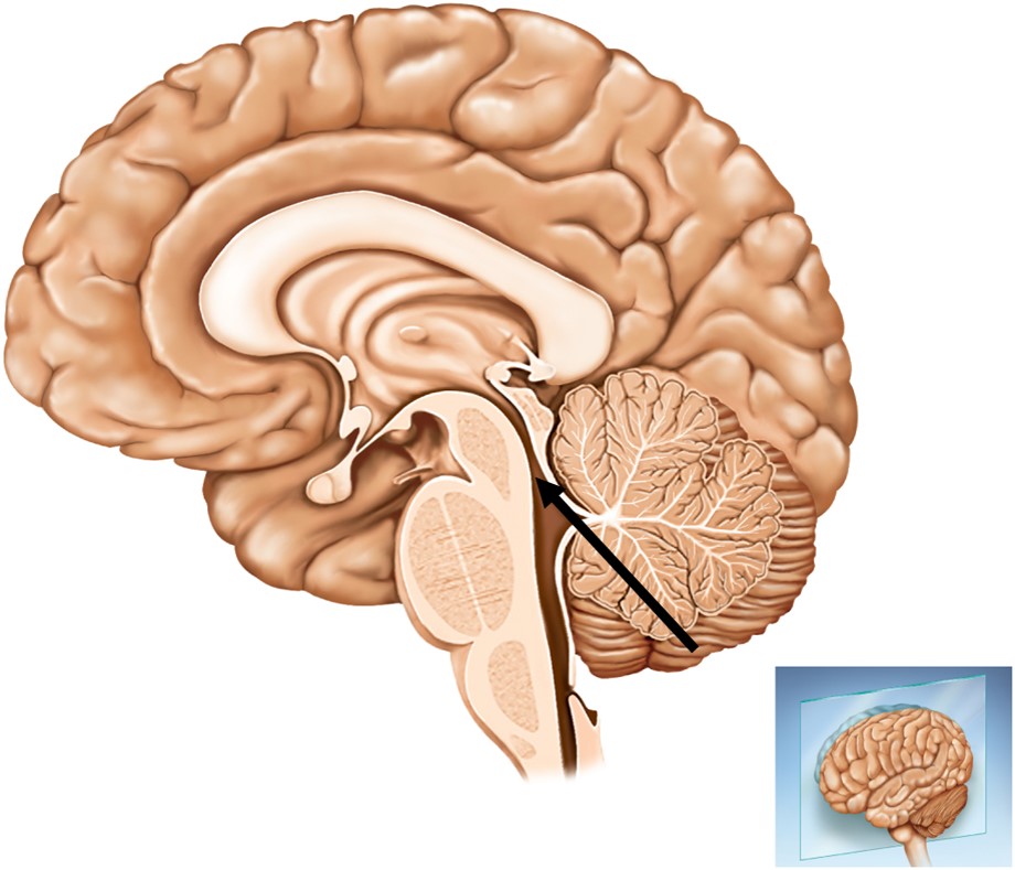 Name the specific scientific name of the region of the brain in blue. (" encephalon")