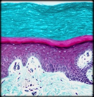 Name for the layer of the epidermis colored in bright blue in the diagram.