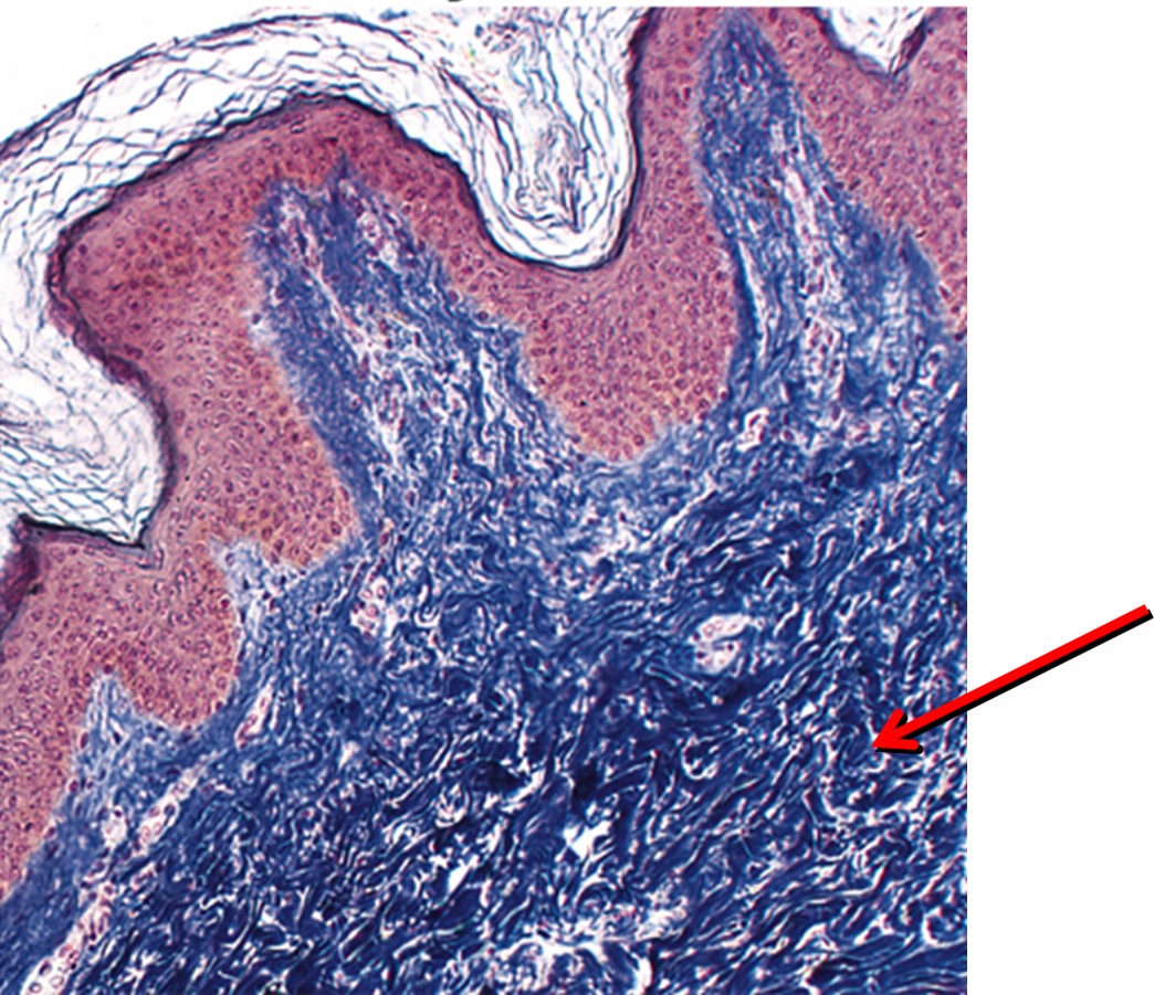 Name for the layer of the epidermis labeled by the arrow. (cells of this layer contain dark-stained granules).